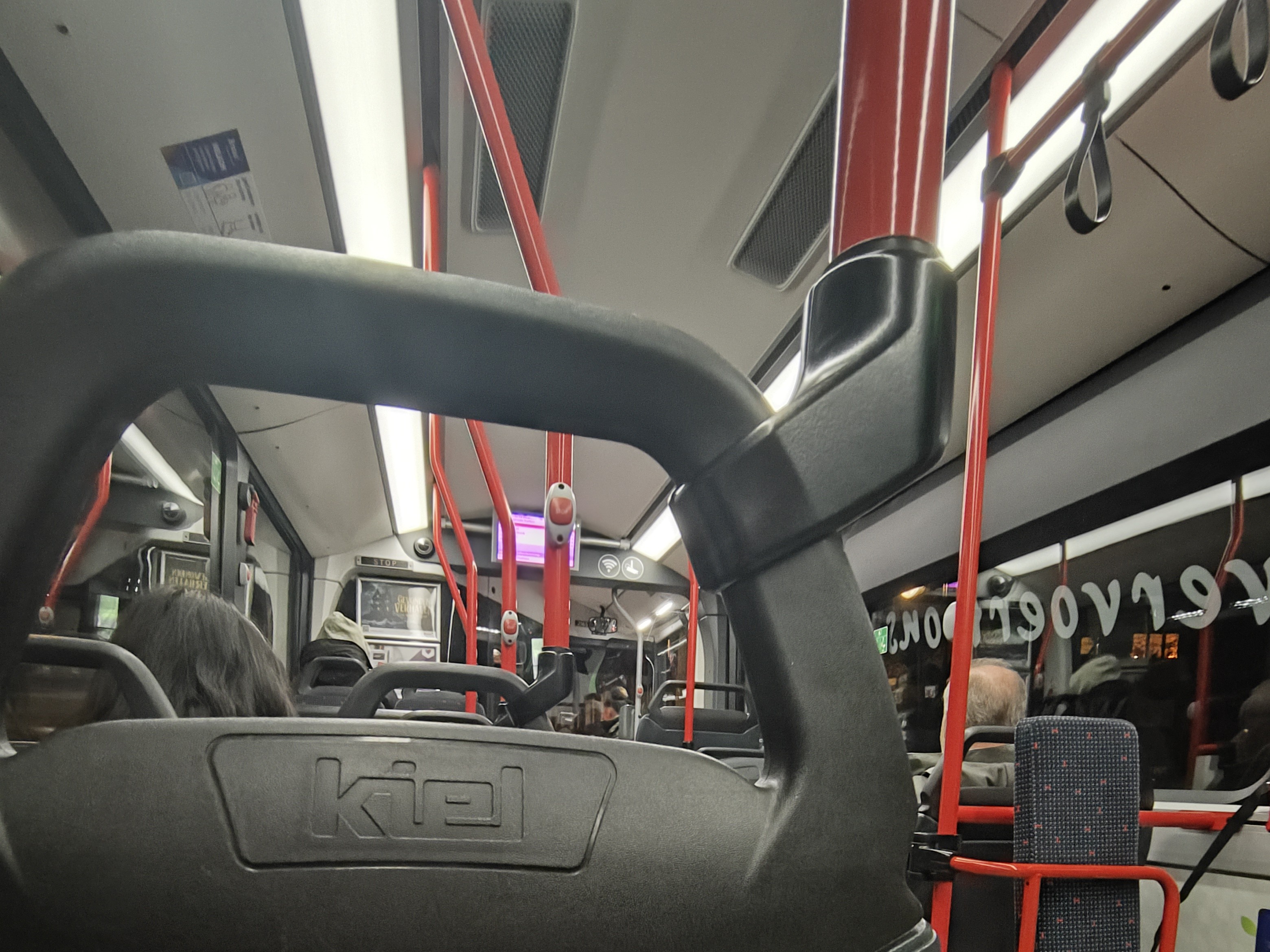 Arrivé à 20h à destination, sans avoir mangé, j'avais hâte d'aller visiter la ville et trouver un restaurant. Mon hôte Airbnb m'a conseillé de m'y rendre en bus, pour plus de simplicité et de convivialité. Me voici donc dans un bus, chose qui ne m'était pas arrivé depuis un bon moment, électrique de surcroît.