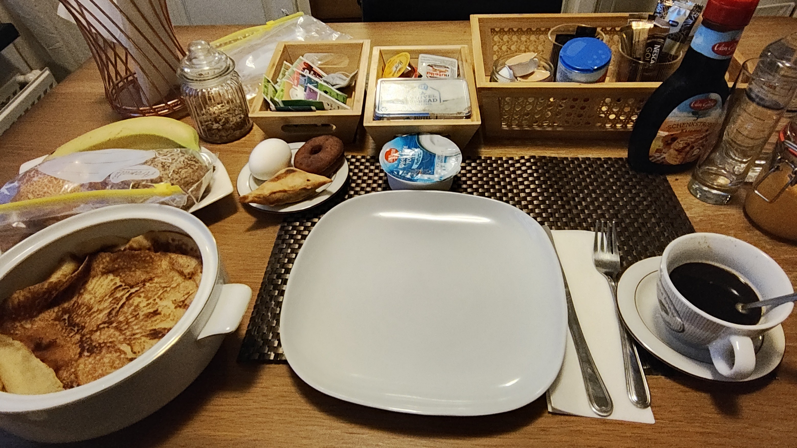 Après les sandwichs triangles du midi, ce sera une pizza le soir. L'aspect culinaire de ce voyage est clairement négligé 😂 ! Sauf le petit déjeuner, royal, prévu par mon hôte.