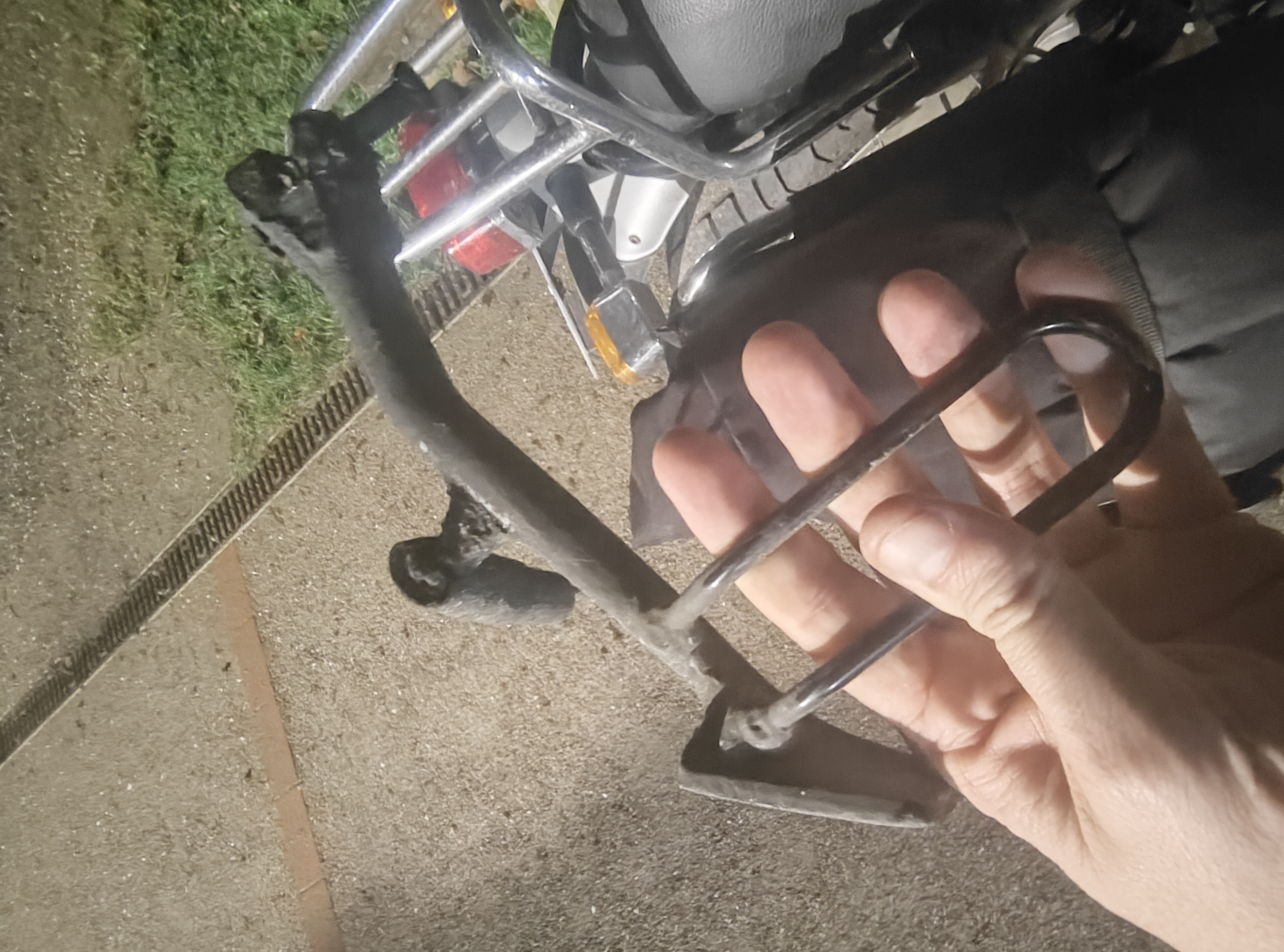 Mais c'était sans compter sur la béquille latérale de ma moto, qui a tenté de fuguer 😮