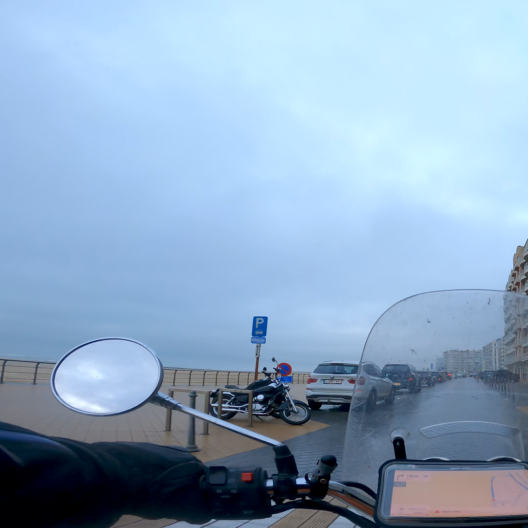 Maintenant que le décor est planté, imaginez un touriste à moto en train de visiter et chercher une place pour se garer dans un centre-ville ancien, aux ruelles étroites, pavées et mouillées, avec des piétons et cyclistes qui ne font absolument pas attention aux voitures.
