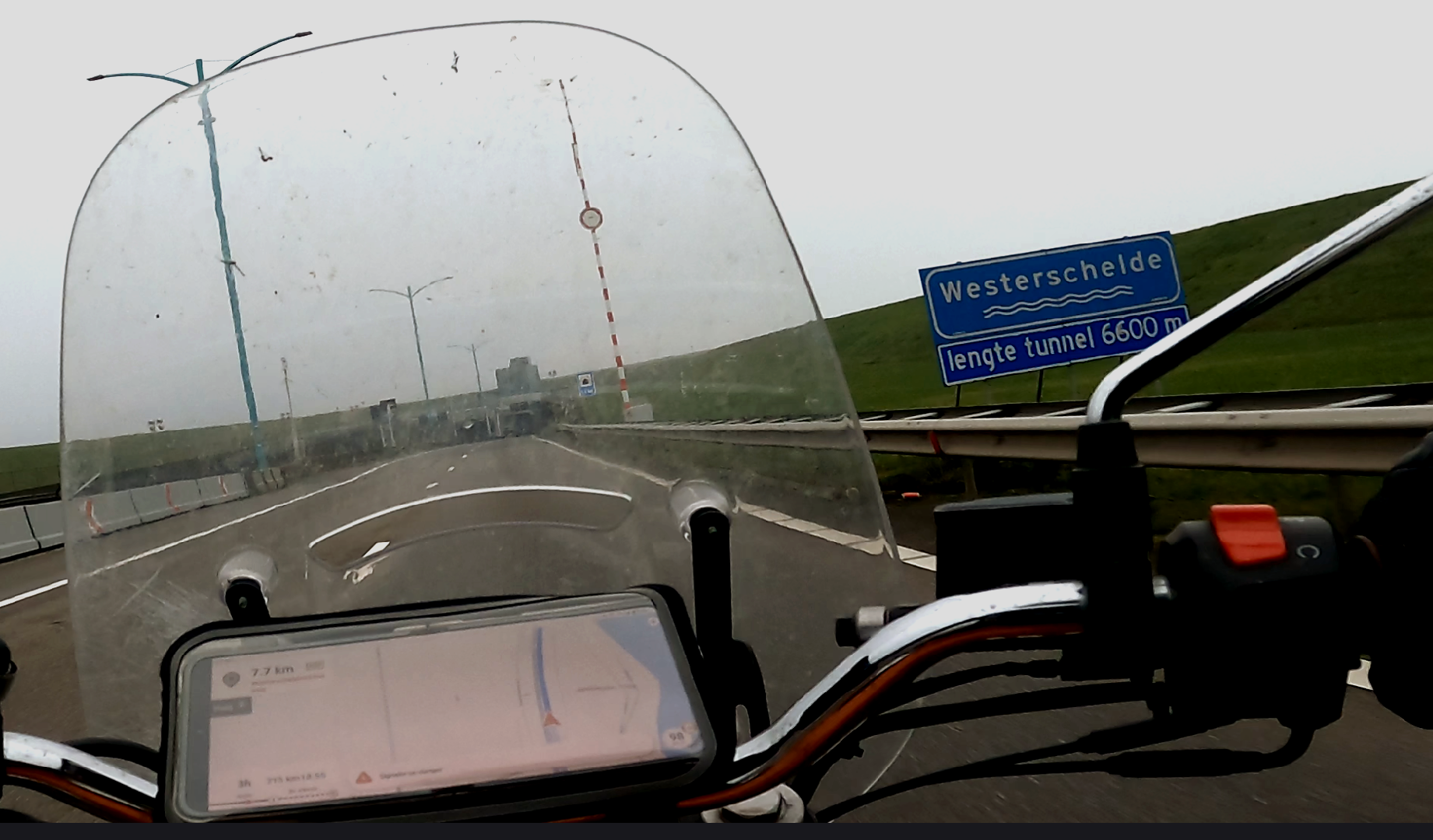 Le retour en Belgique commence par un tunnel de 6,6 km, gratuit pour les motos (et toc !)